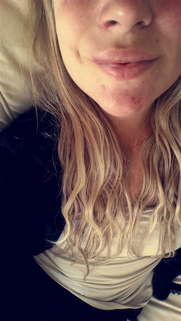 huden over læben buler ud også.. som sagt fik ikke lige fanget det da jeg ikke kunne se hvad jeg lavede hvis jeg drejede og fik taget billeder af hår og tv istedet.. haha... men plejer ikke have den bule på venstre læbe og heller ikke over læben...