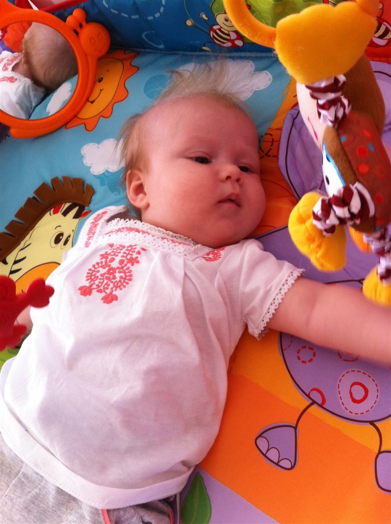 Hun har da små fine øre, lille fin næse, lille fin mund, dejlige kinder, skønne øjne. Armene sidder og vender rigtigt?