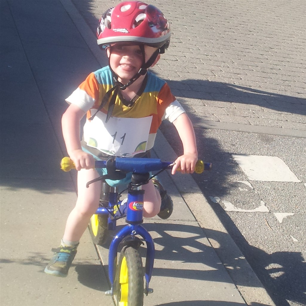 Og bagefter gik mange af de andre børn og sagde " ej så i hvor sej Elias var, han kørte på løbecykel"
