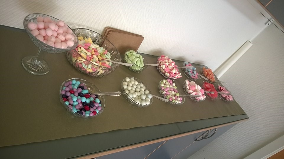 Så fik vores smukke datter sit navn Amanda, og hun var bare sååå smuk, hun er knap 5 måneder og lige begyndt med at være utryk ved fremmede, men det havde hun helt glemt på dagen. Så måtte lige flashe vores smukke datter og lidt kagebord fra dagen (var gået lidt over gevind, kun det ene kagebord :-D )