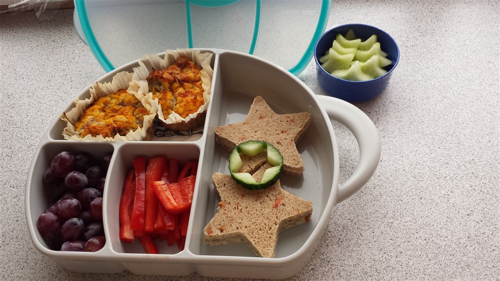 En anden med noget grønt (agurk,gulerod,ærter,majs,peberfrugt eller lign.