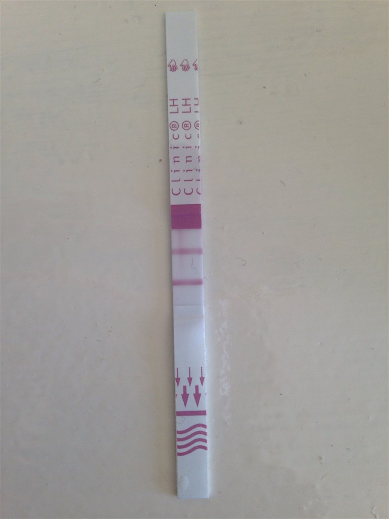 den er desværre negativ på billedet men tror den er undervejs. Prøv at blive ved med at teste de næste dage. Så du har lidt at sammenligne med får du her et billede af min positive ÆL test fra forrige uge. Reglen er at teststregen skal være lige så tydelig som kontrolstregen eller tydligere.