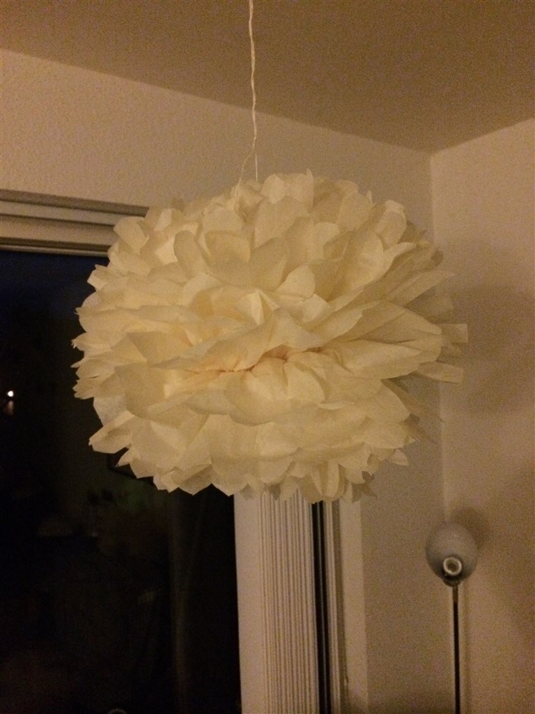 vi havde også papirs pompoms, som jeg selv foldede. Udover det havde jeg købt en masse brudetyl og puttet på stolper osv - virkelig fint