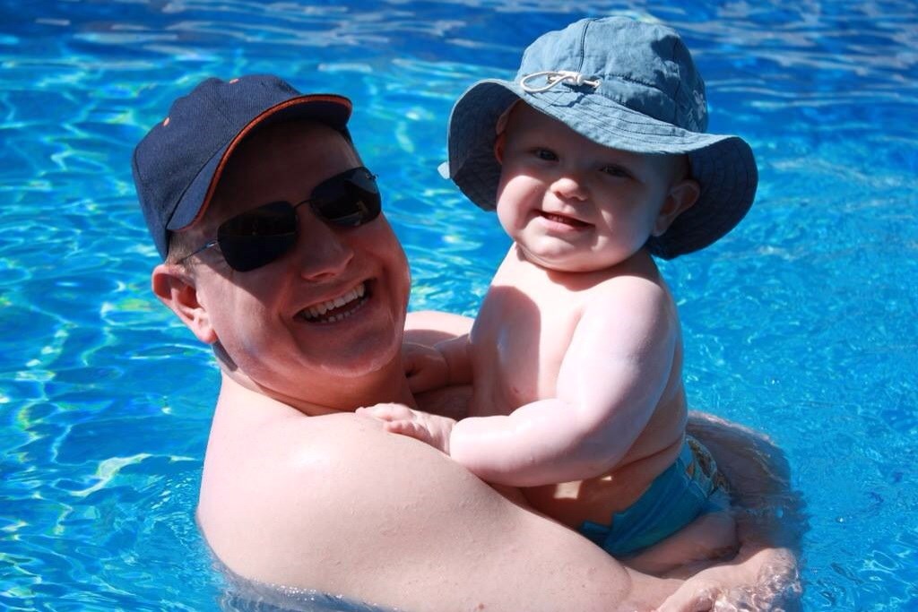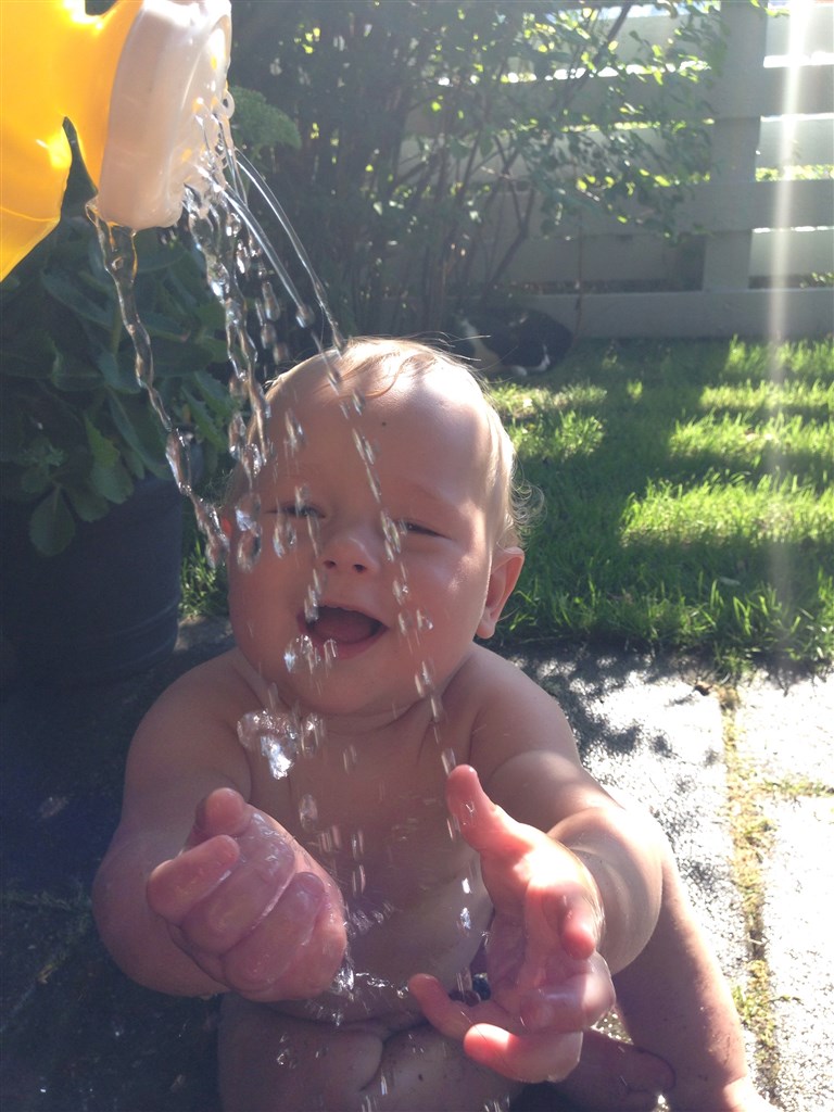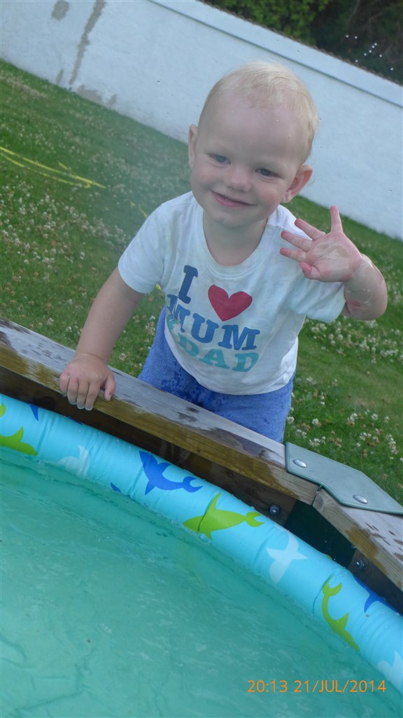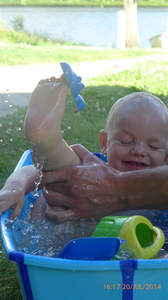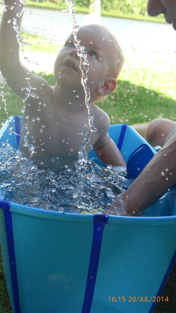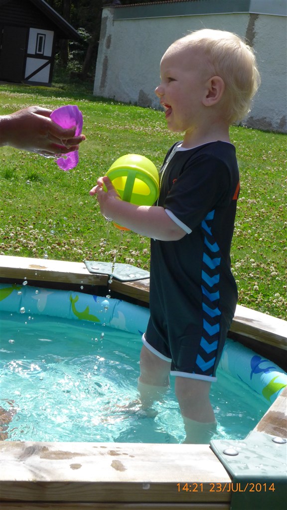 Farmor har pool og den er hun helt vild med, og faster har også pool, men vi bader i det store fællesbassin, hvor Marie kan drøne rundt i sin badering, da hun kan nå bunden.