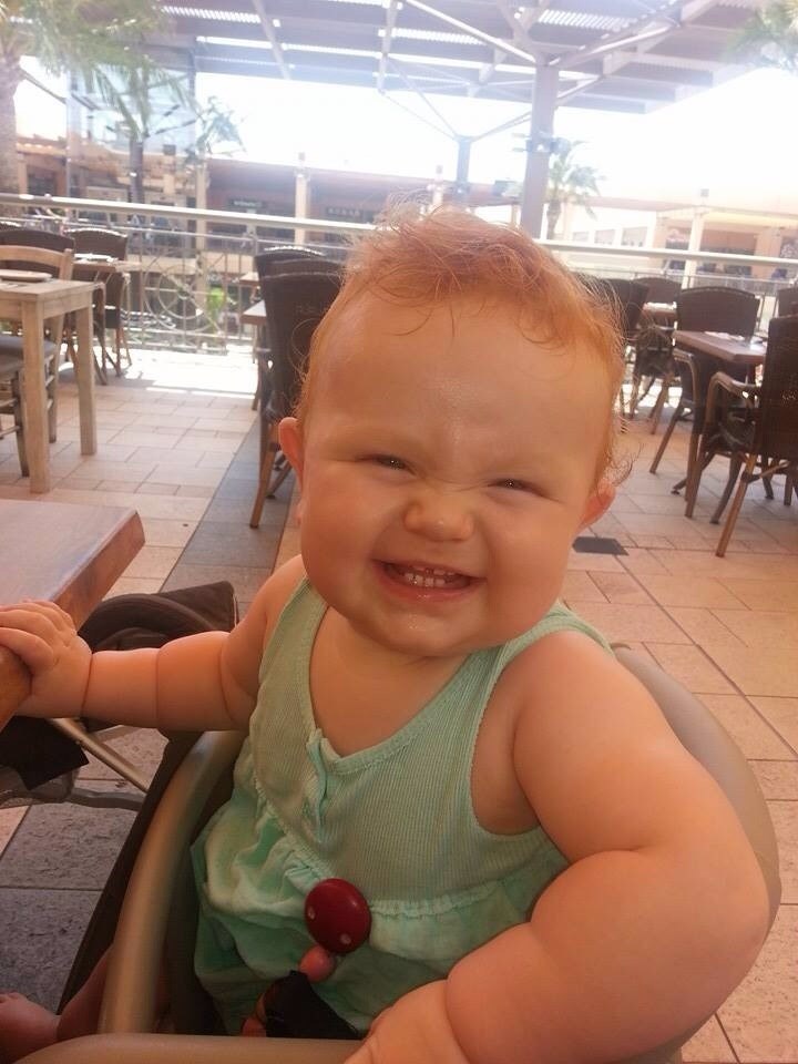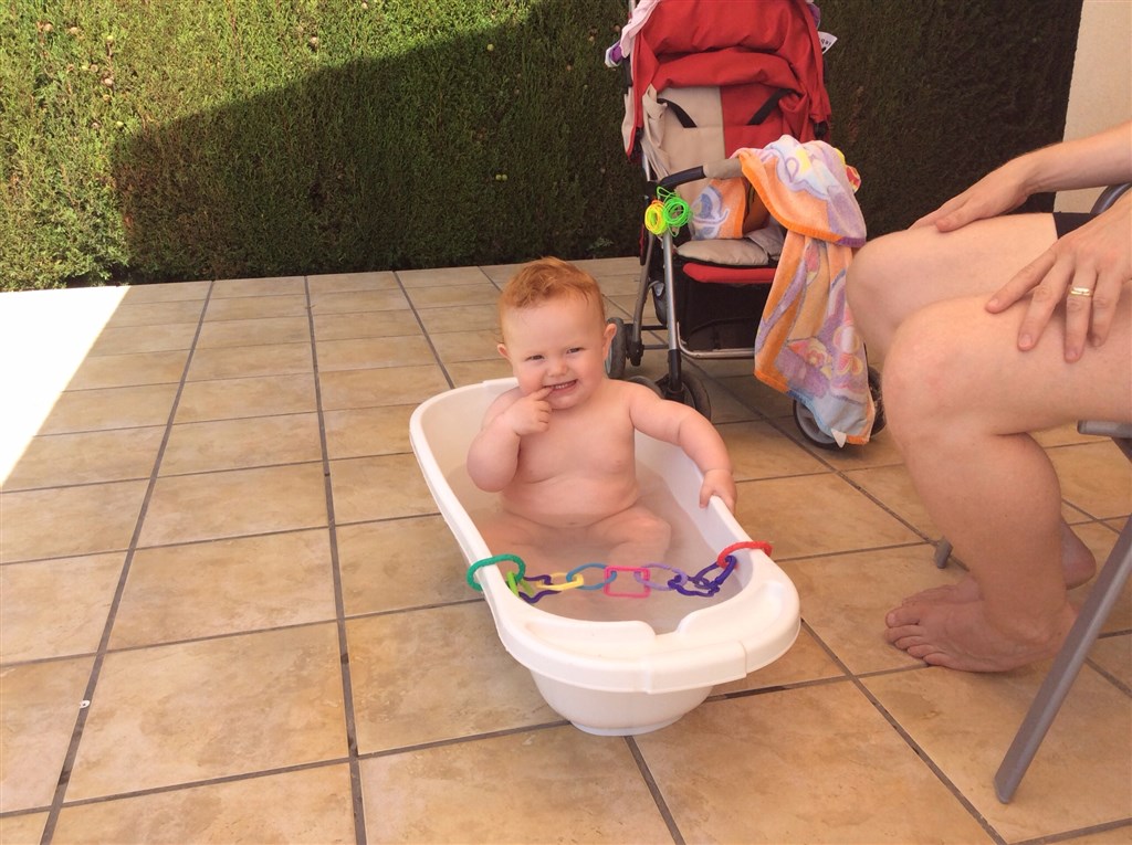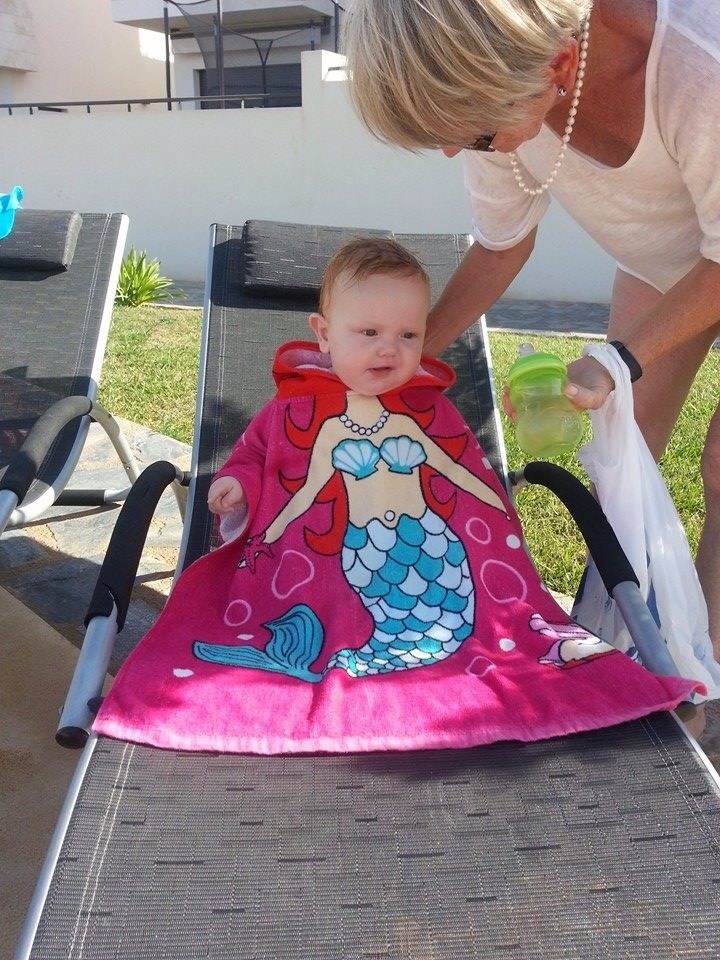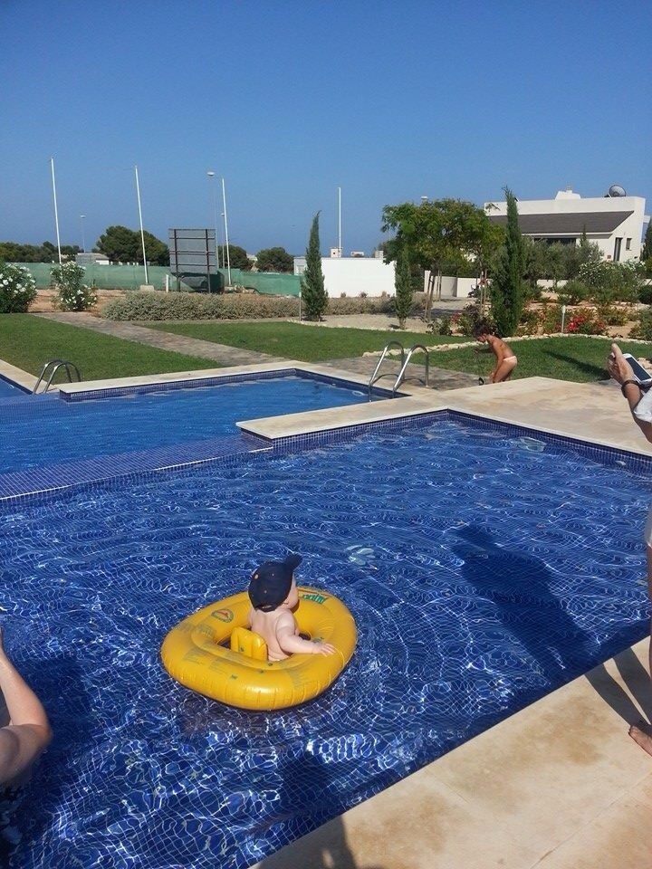 Min datter på snart 10 mdr. Vi er lige nu i Spanien, hvor billederne er fra. Hendes Farmor og faster er bosat hernede, så vi er i Spanien et par gange om året, så marie kan lærer hendes fætter og faster at kende. :-)