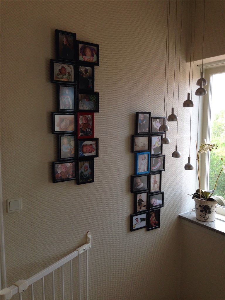 Synes det giver en fed og anderledes effekt, at det er lavet i et hjørne.. Googler bare FOTO-væg og fandt de her billeder.