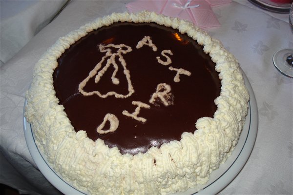 Astrids-mor skriver:Det ikk ligefrem en speciel lagkage, men elsker bare at 'tegne' på lagkager.. så smider lige 2 billeder ind a lagkagerne fra Astrid's barnedåb