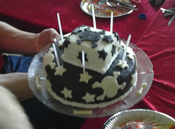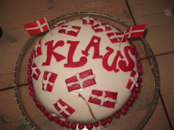 Nummer 2 er Viktors egen fødselsdagskage. Den er lavet med købebunde, syltetøj med banan stykker og æblemos, lyder vildt mærkeligt men han var vild med den.
