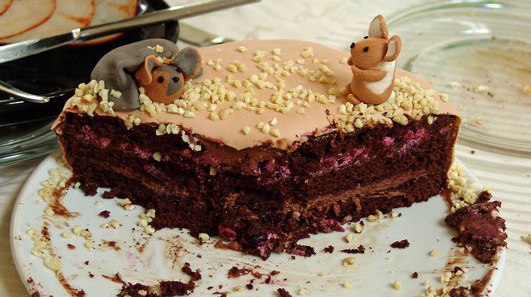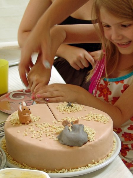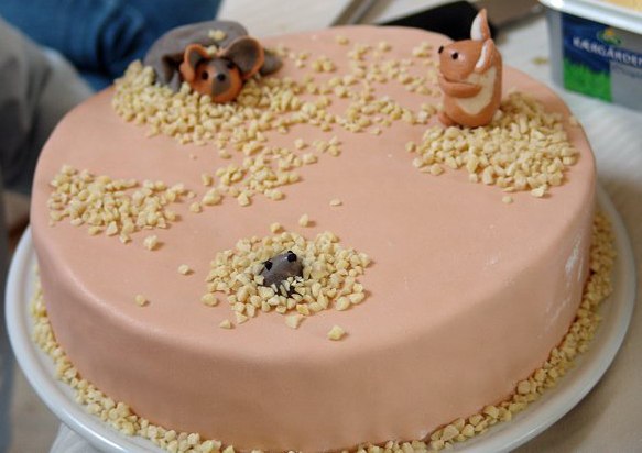 Den første er en temakage - fordi Laura, som blev 7 år, ønskede sig hamstere over alt andet i år! Den er med bærsymfoni-mousse og tobleronecreme.