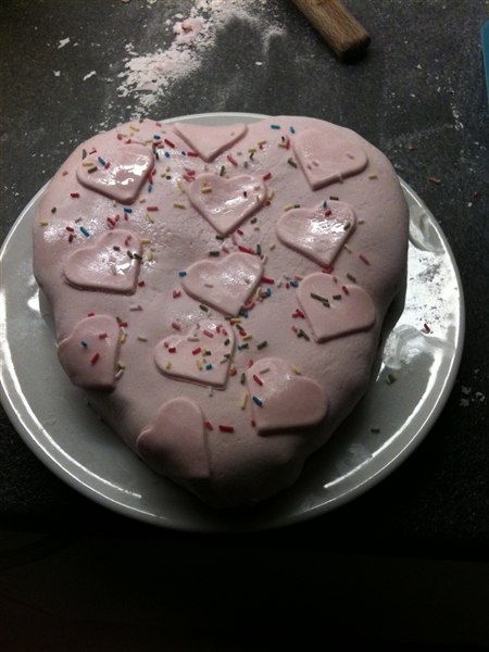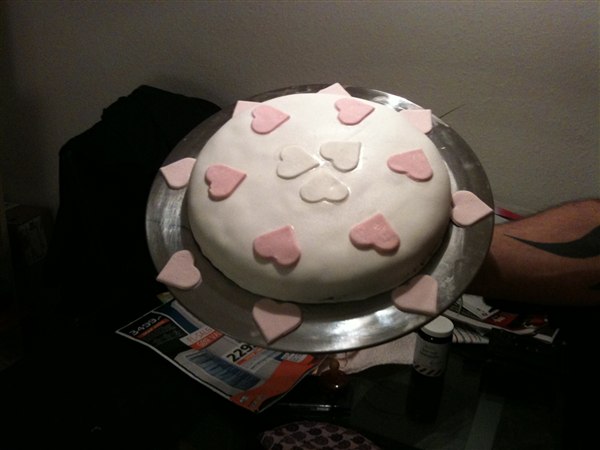 min 1 kage med mmf som er en banankage smurt op med nutella og så mmf, den blev slet ik pæn men mums den var god