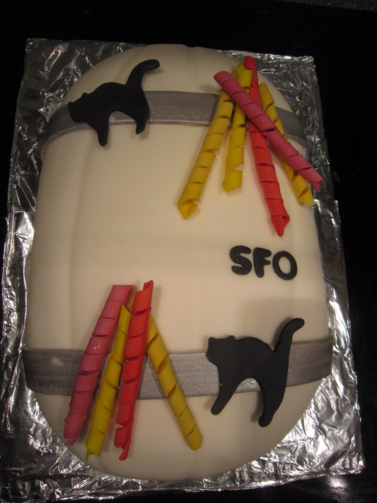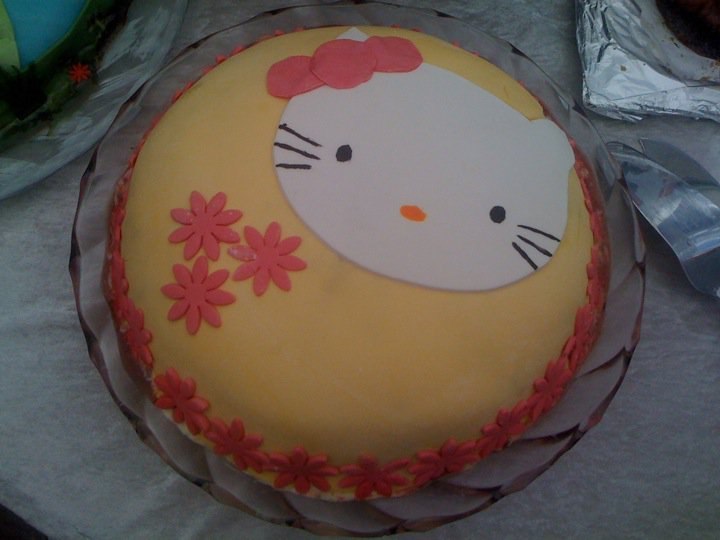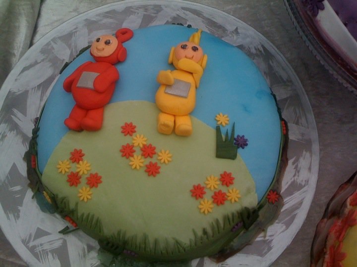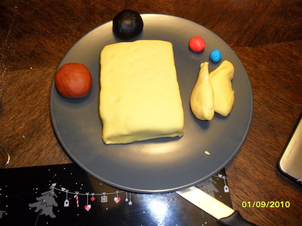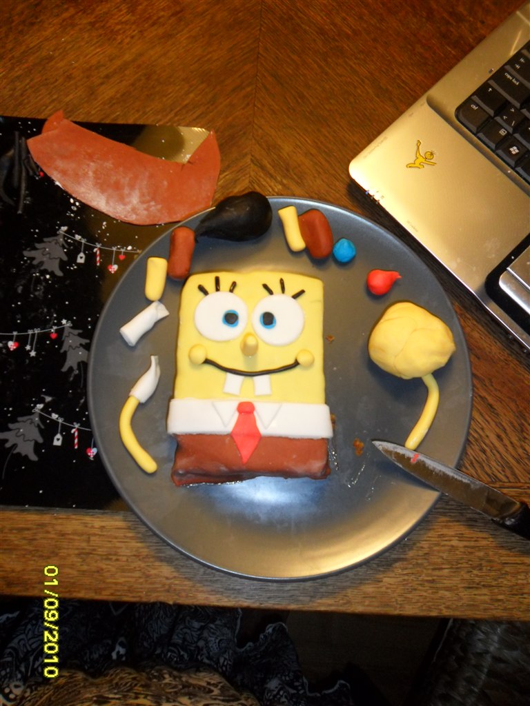 Har lavet een kage: Svampebob-kage til min søns 4-års fødselsdag i september (bare en kanelkage indenunder). Det var ikke helt nemt at rulle ud med en uge til termin (= STOR mave