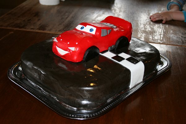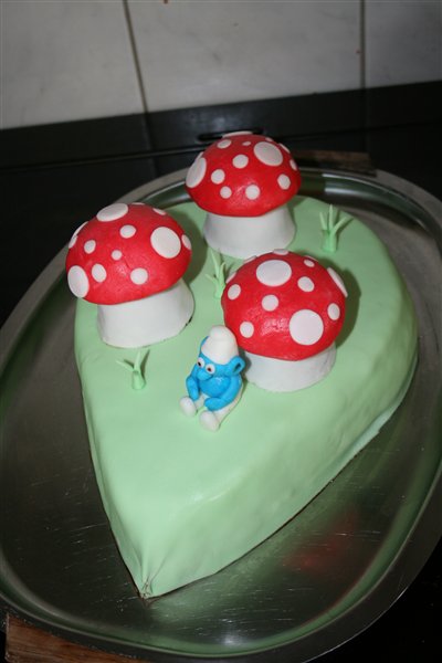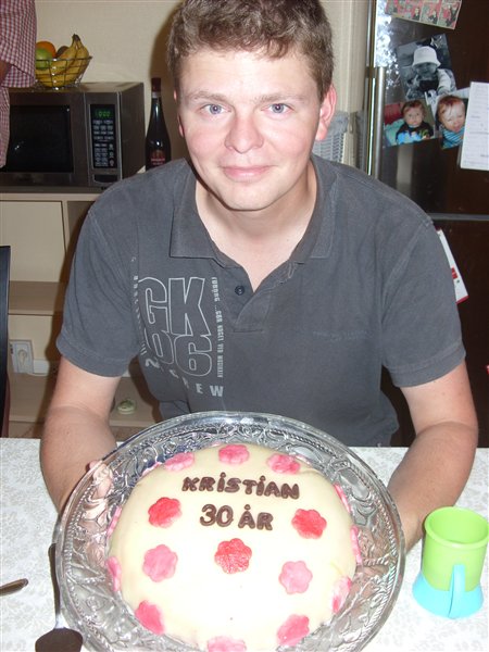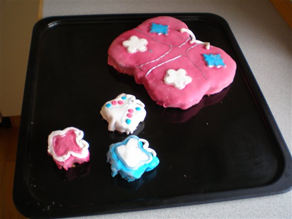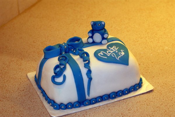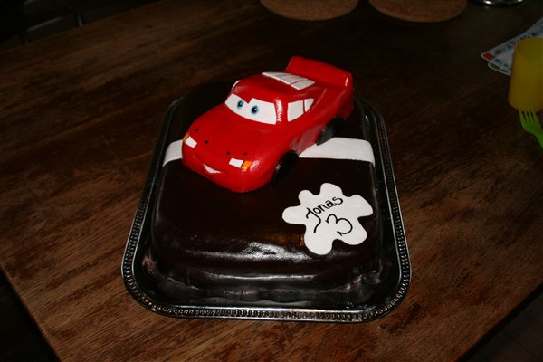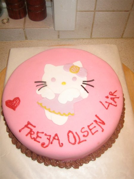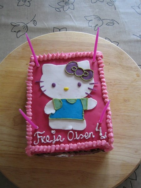 1. kage til Emil´s 2 års med hjemmelavet sukkerbunde, et lag tobleronecreme og 1 lag hindbærmouse. overtrukket med sugerpase og dekoreret med sukkerpapir billede.