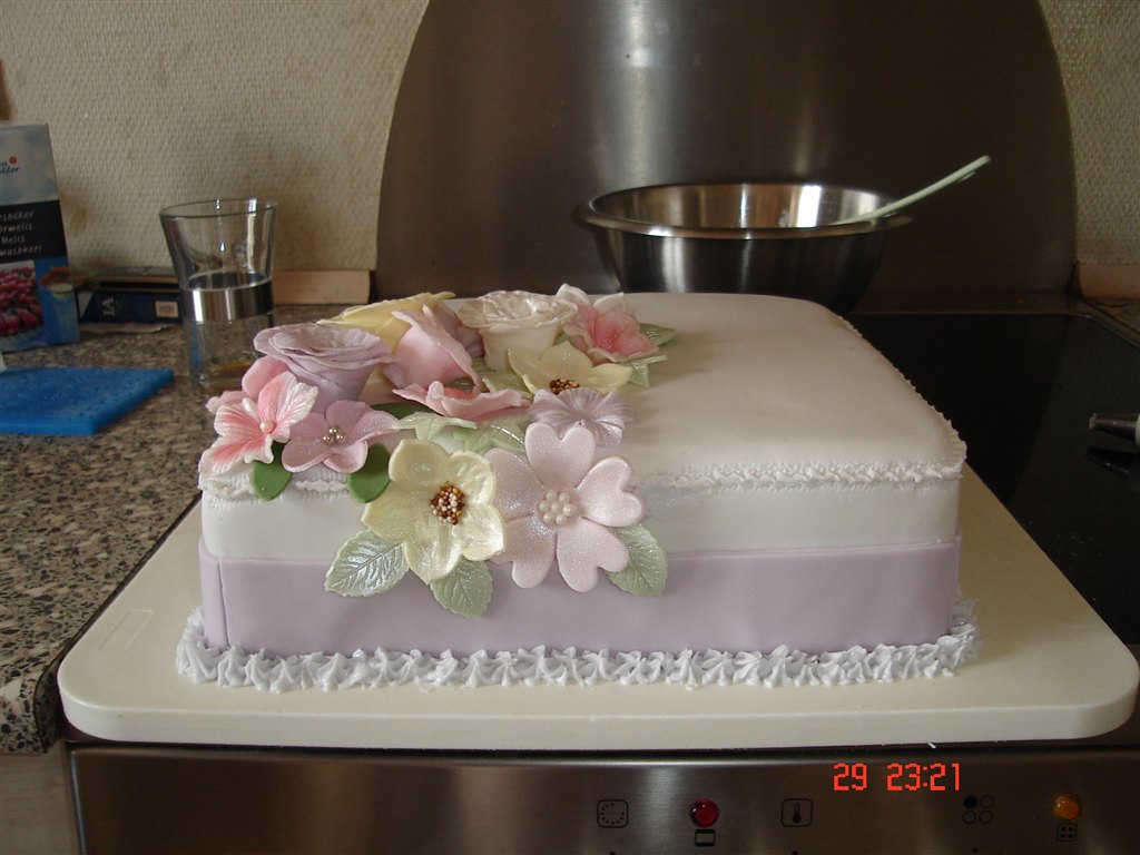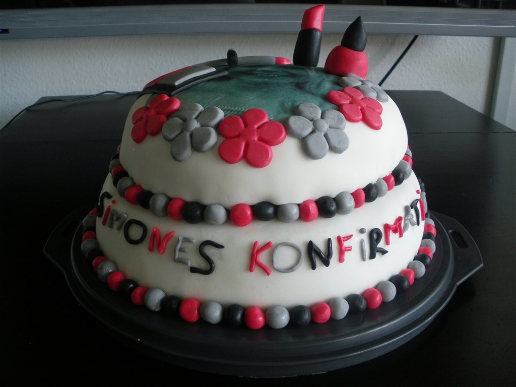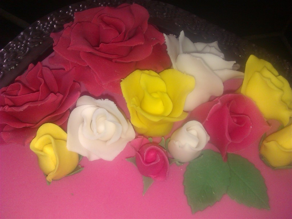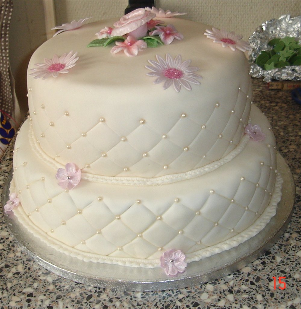 den anden er med lyse lagkage bunde. hindbær mousse og citron mousse. smurt op med psc og pyntet med fondant.