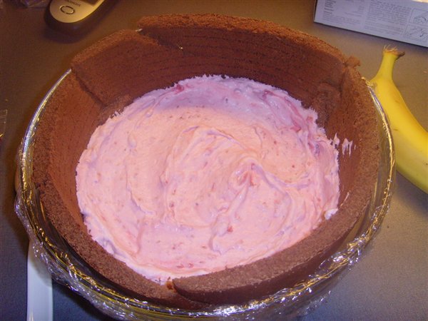 Bunde af chokoladekage, fyld af henholdsvis hinbærfromage og skildpaddecreme. Pynt MMF