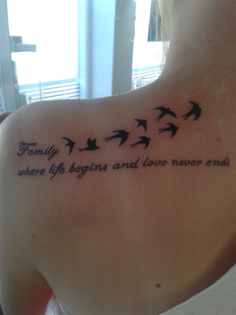 Louisejulia skriver: Jeg har lige været nede og få lavet min første tattoovering, jeg er så glad for den! Svalerne symbolisere mine søskende, jeg og min far