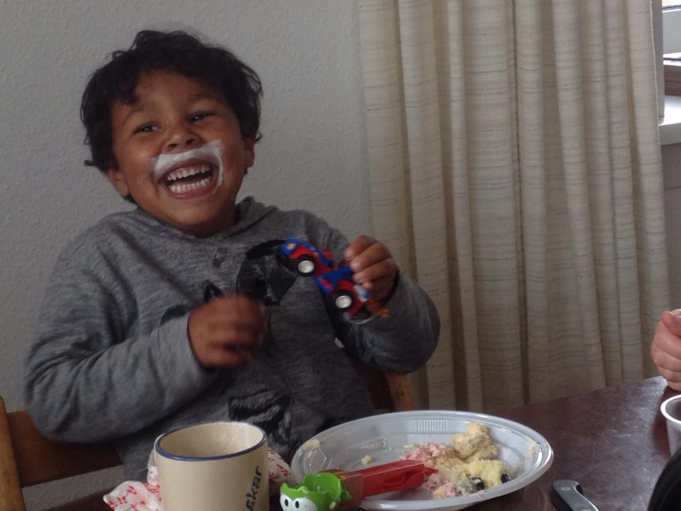 HURRA!!! Oskar har haft en succesrig 4 års fødselsdag med super dejlige gaver! Det vises vidst på billedet, at han VIRKELIG har nydt at være midtpunktet i dag! Tænk at han nu er 4 år. Jeg er stolt over hvor sød han har været i dag! Hans mormor, farmor og Mikkels mor og bedstemor var her, til at fejre ham sammen med os! Og selvom det er 4 år i træk, at hans far brænder ham af på hans fødselsdag, så var det fantastisk alligevel! Oskar har i hvert fald ikke manglet noget