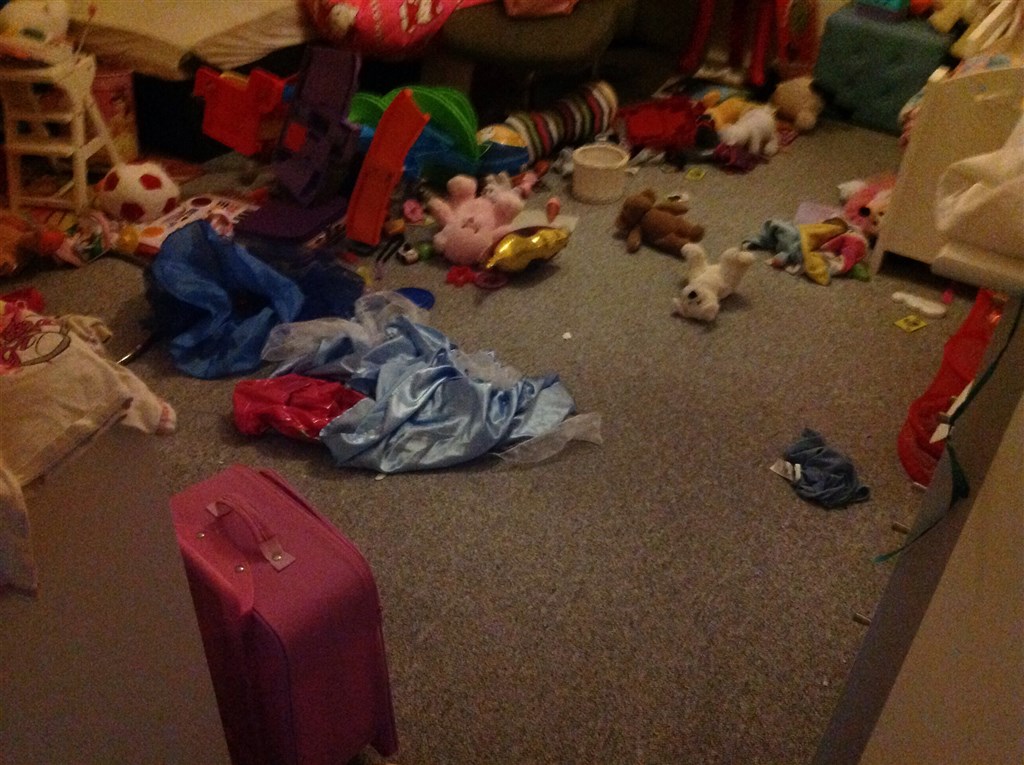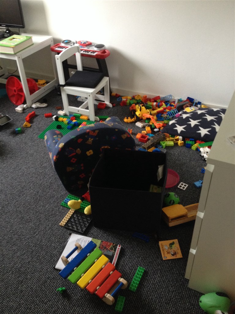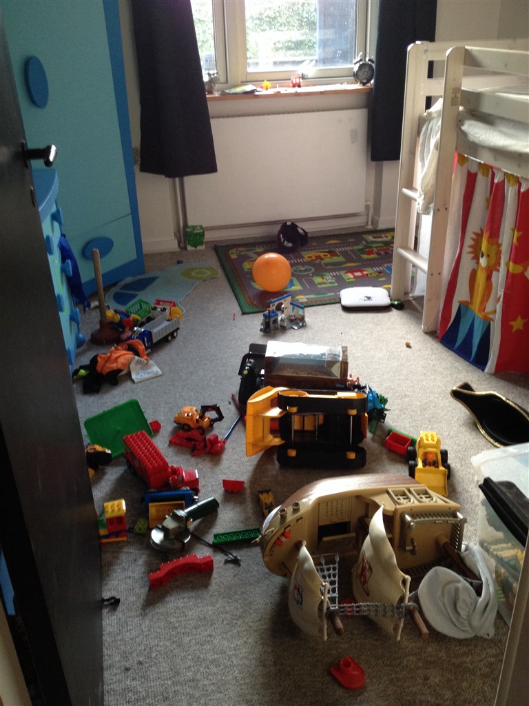 her er det den store på 3,5 der roder! Sådan her ser det ud efter han har været alene på værelset i 15 minutter!