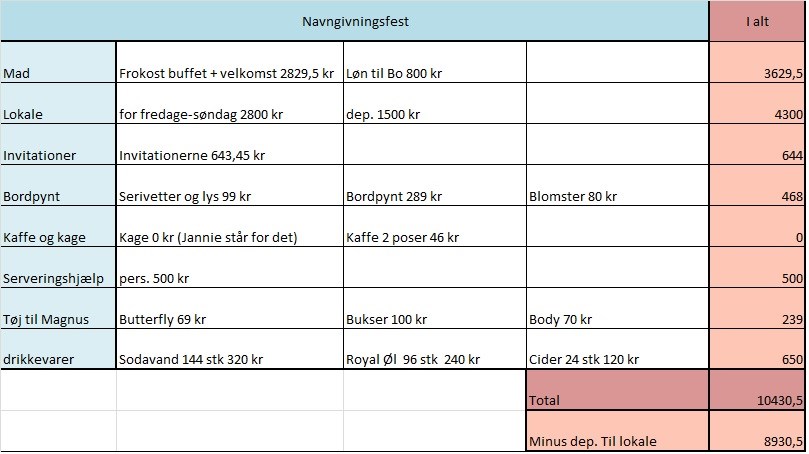 Men hvis jeg lavede selv til 30 pers vil jeg sige 5000 for mad og drikke.