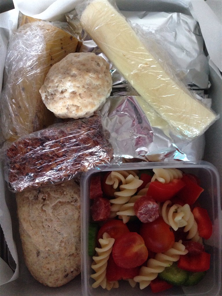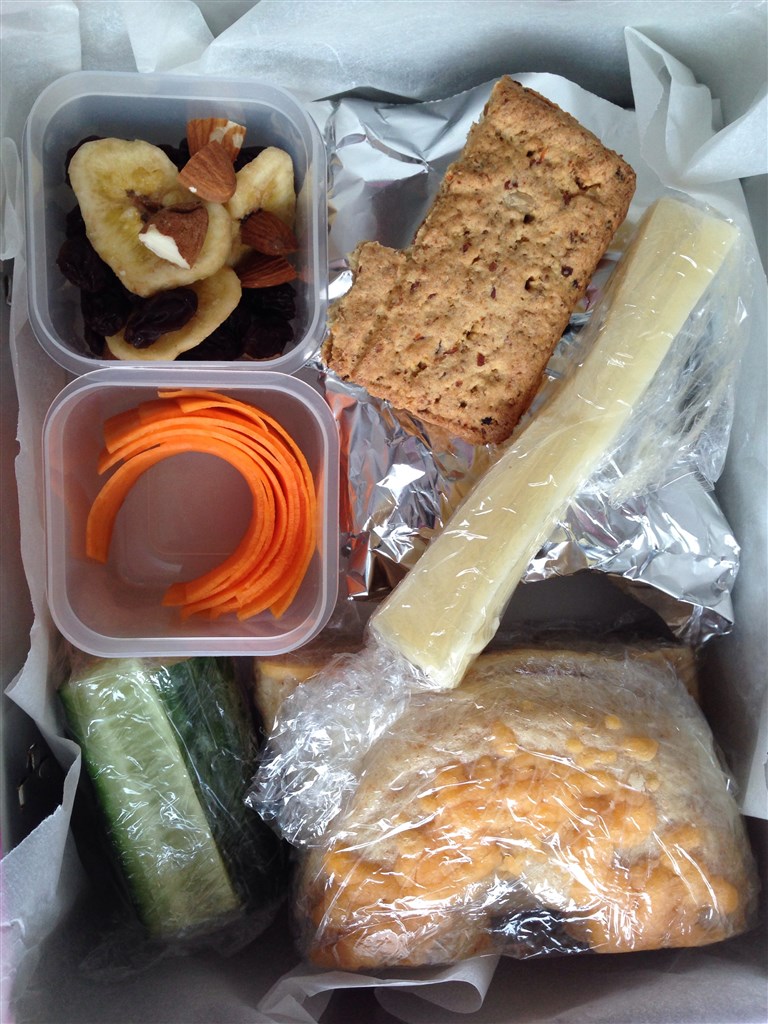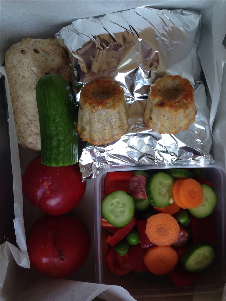 normalvis har de dog rugbrødder med pålæg efter hvad de bedst kan lide i den tid, en bøtte med mandler og agurker, en bøtte med cheasy yougurt, en figenstand og lidt peberfrugt/evt pil selv æg og en hjemmebagt bolle.