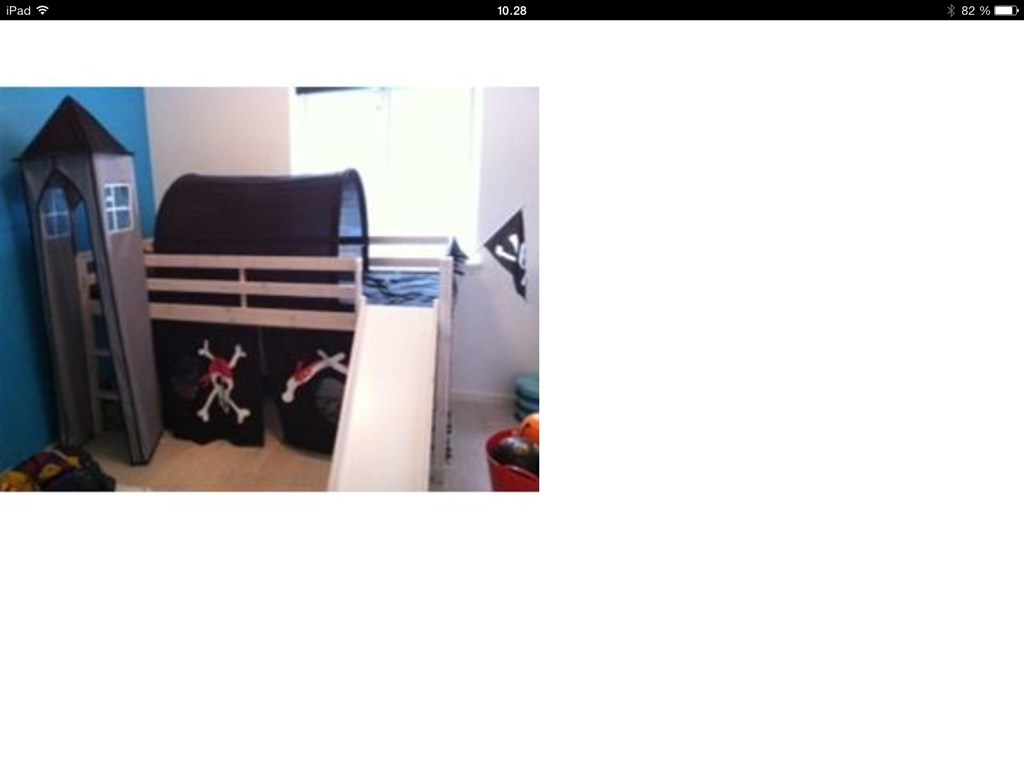 Min søn har denne seng fra IKEA. Han har haft den siden han var 4 år. Vi har taget den runde dims af og den ved trappen... Nu er han knap 6 år, og den er mere store drenge seng nu..
