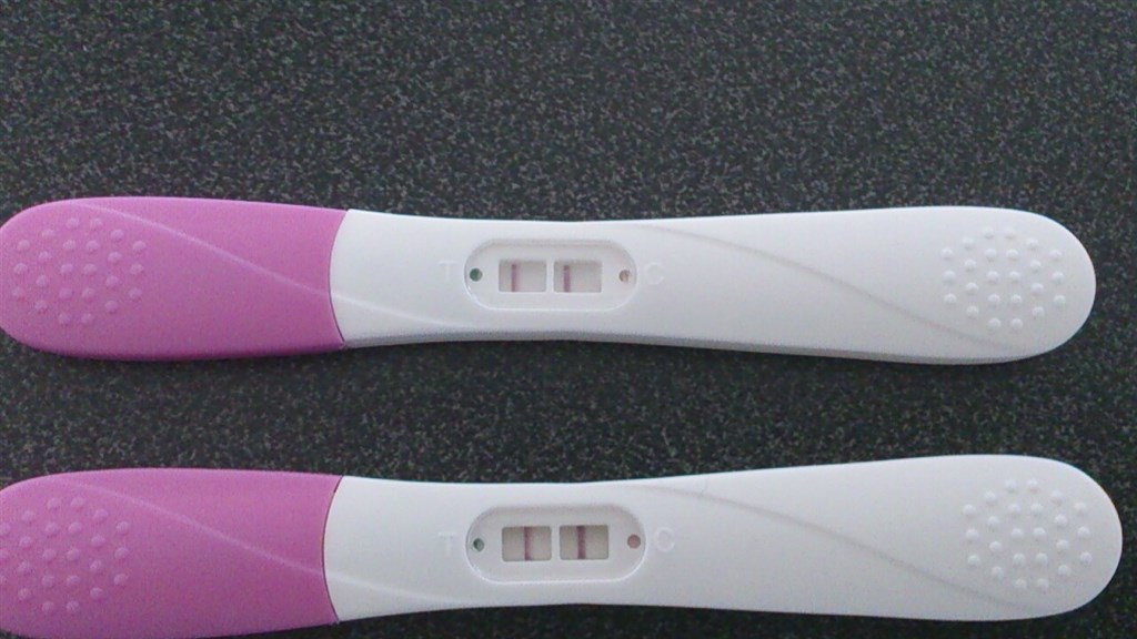 Jeg har taget to test den første I kan se på billedet er taget i dag kl. 11.15 og den anden igår. Der står på kassen med test at streg to skal være ligeså tydelig som stregen i feltet c før den er positiv. Hvad synes I?