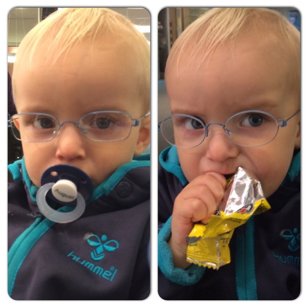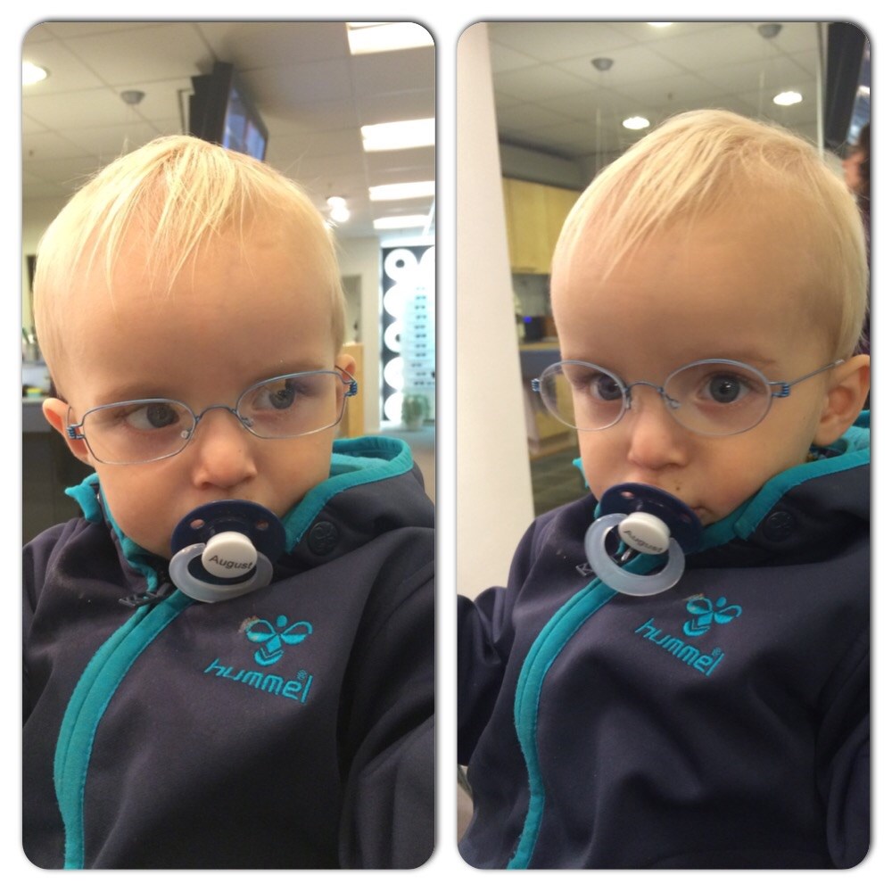 vores søn på 15 mdr skal have briller, men hold op hvor er det svært at vælge? - min mand og jeg har begge set os blinde på det og har nu fået brillerne med hjem.