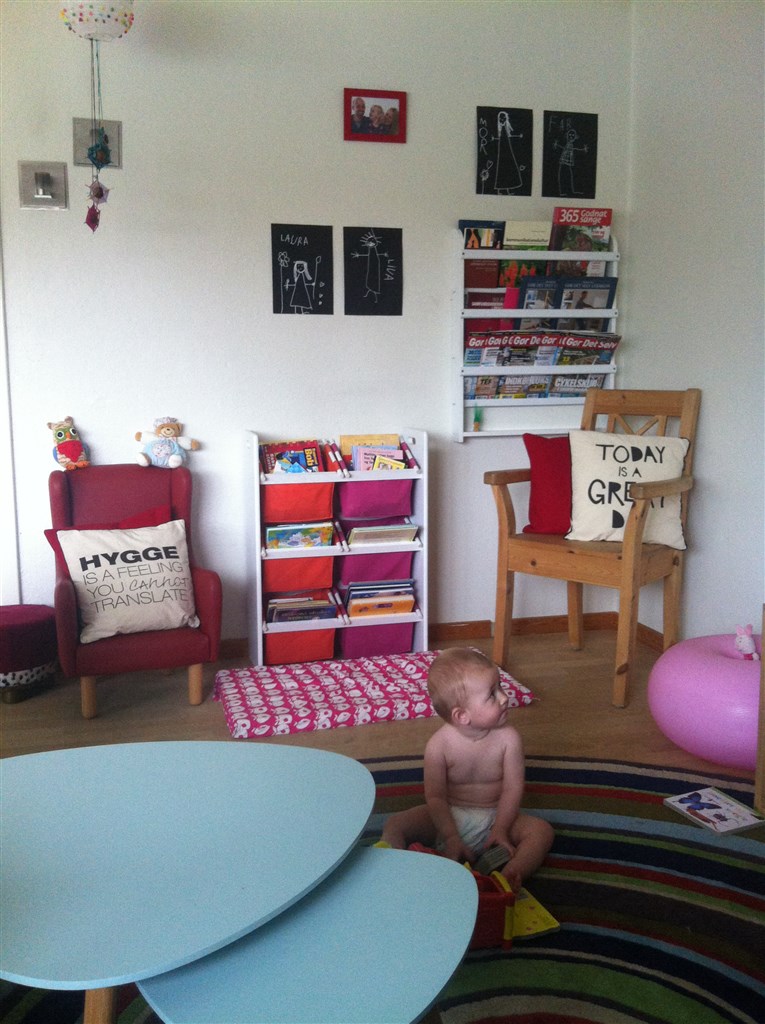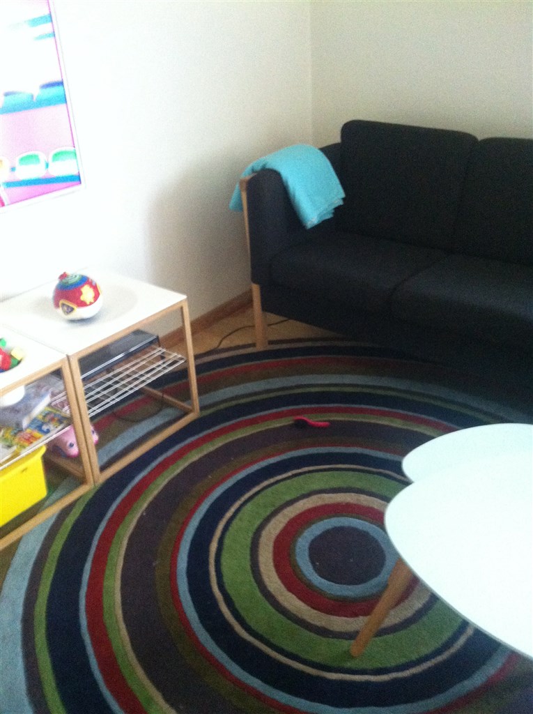 Jeg vil gerne på sigt (Når Nikoline har lært at gå) Få fjernet halvdelen af skumgulvet ved sofa/fjernsynområdet. Nu har vi bare lagt det, så hun ikke vælter ned i flisegulvet