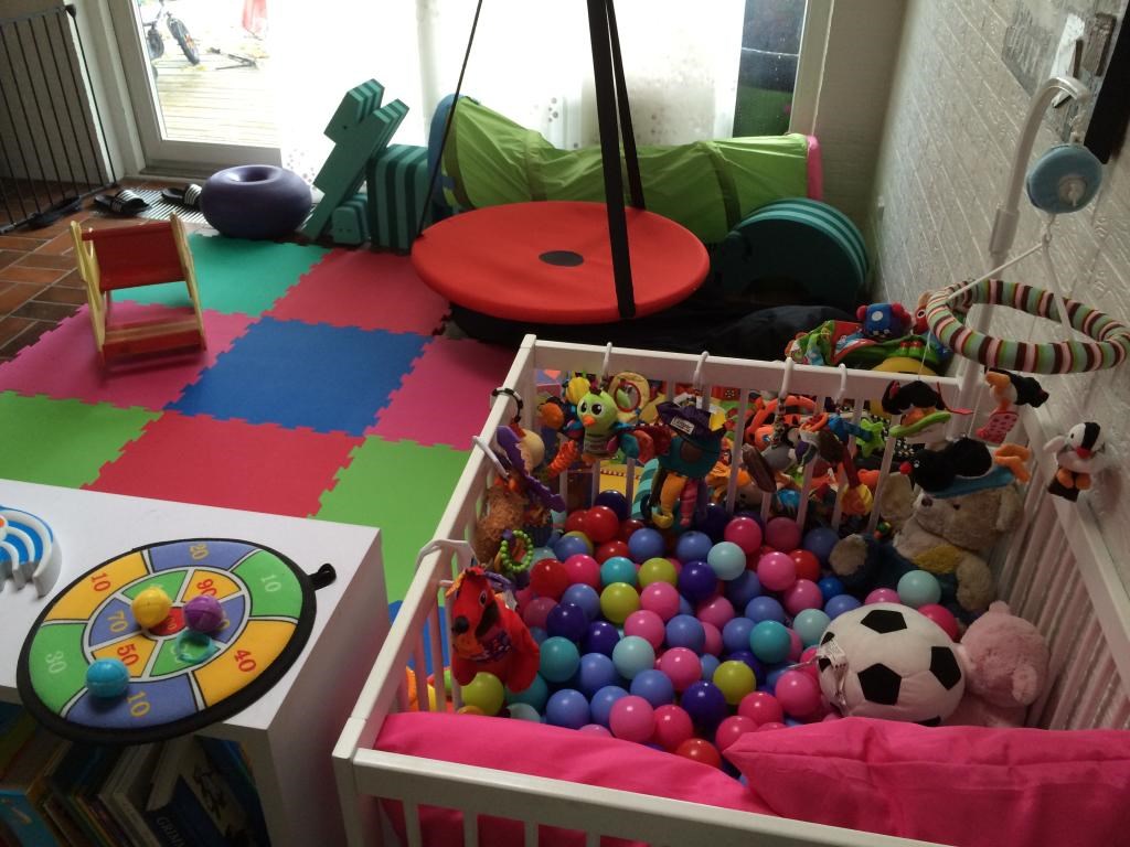 Nikoline har kun en madras og en kasse med bøger i. Hun bruger jo slet ikke sit endnu, så det er et bevist valg at alt hendes legetøj er i stuen. Jeg elsker loppemarkeder, og finder altid noget til ungerne til ingen penge