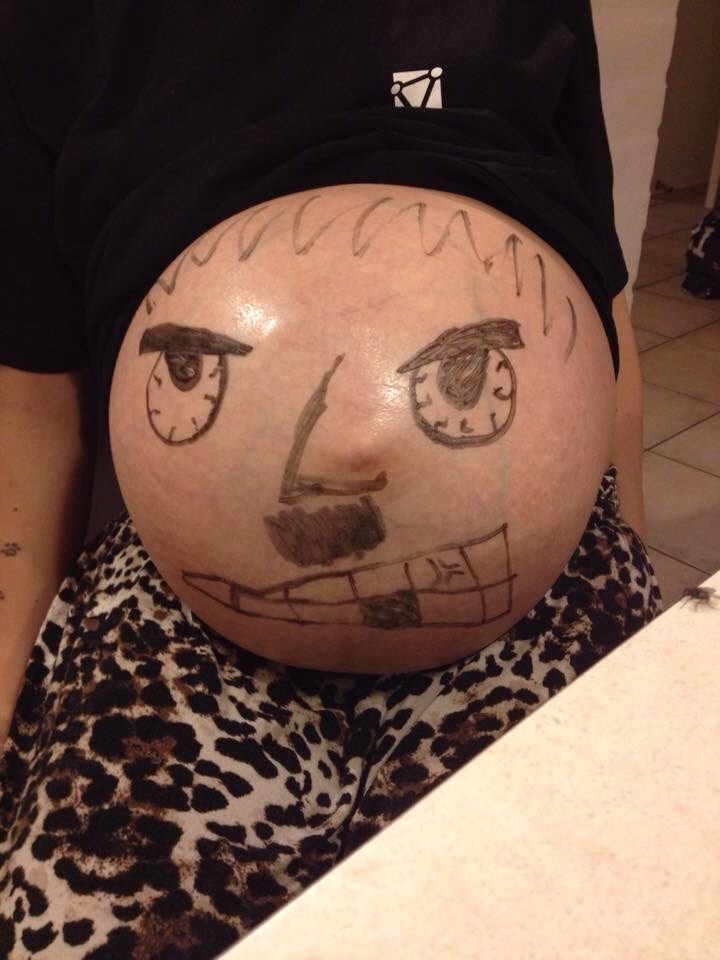 Min skønne mand prøvede at muntre mig op i går ved at tegne på min mave, og pga movember fik den skæg, først bagefter så vi den faktisk ligner hitler, han lagde den så på facebook med teksten: tanjas mave er ved at være lidt småsur
