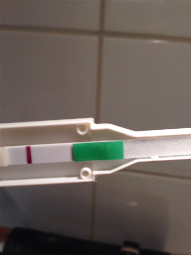 jeg tog denne test omkring kl 10 i formiddags, da jeg lige havde taget den kom der en grålig streg men lidt efter kom det lyserøde som løber igennem testen, og kunne så ane en streg men den var svær at se, men nu her flere timer senere så stregen sådan ud