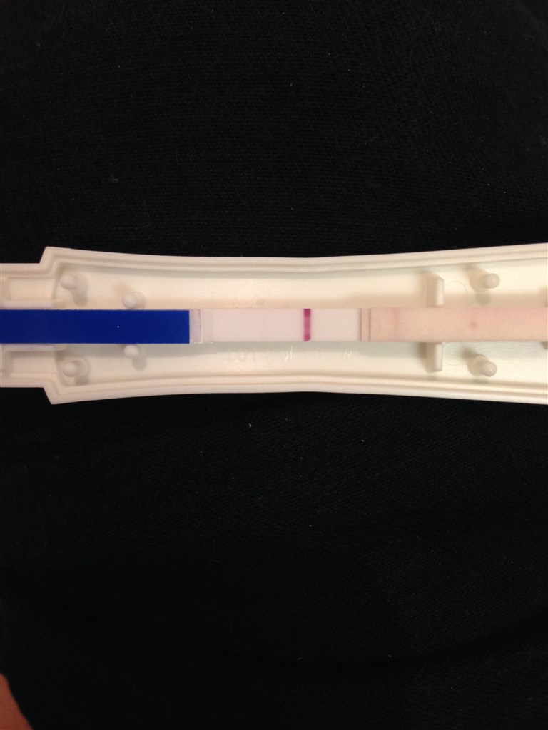 Jeg fik min sidste menstruation d. 5. november, men jeg har haft så mange symptomer de seneste dage, at jeg besluttede at tage en test, velvidende, at der intet ville være. Men testen ser sådan ud? Kan det lade sig gøre at jeg er gravid igen? Jeg er virkelig forvirret. Ifølge mine beregninger ville jeg jo ikke engang have haft ægløsning endnu i denne cyklus :s Måske er det bare ren indbildning, men hvad ser I?