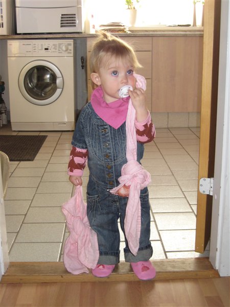 Hun gør nemlig det når hun bliver urolig mens hun sover, at hun ligger og bevæger hovdet rundt, indtil hun har fået stofbleen godt ned over hovdet og først da finder hun ro igen..