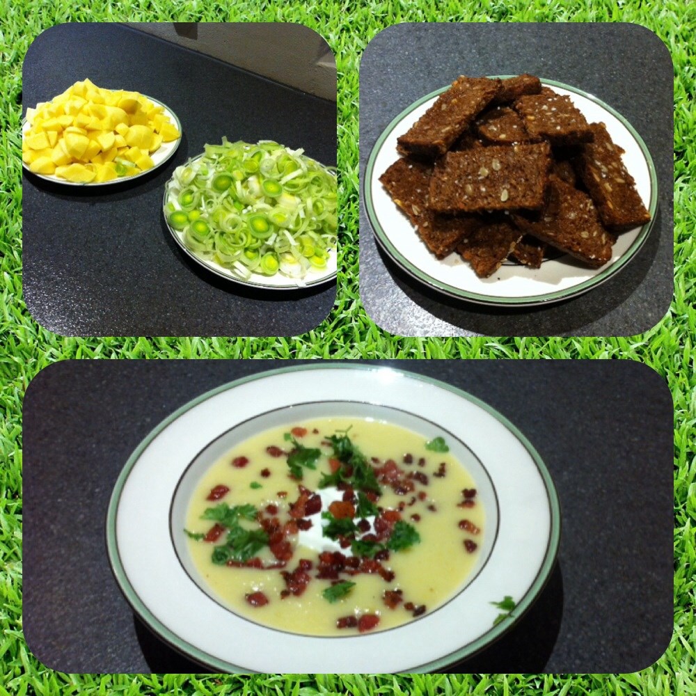 Vi har fået hamburgerrryg med kartofler, grønsager og hvid sovs