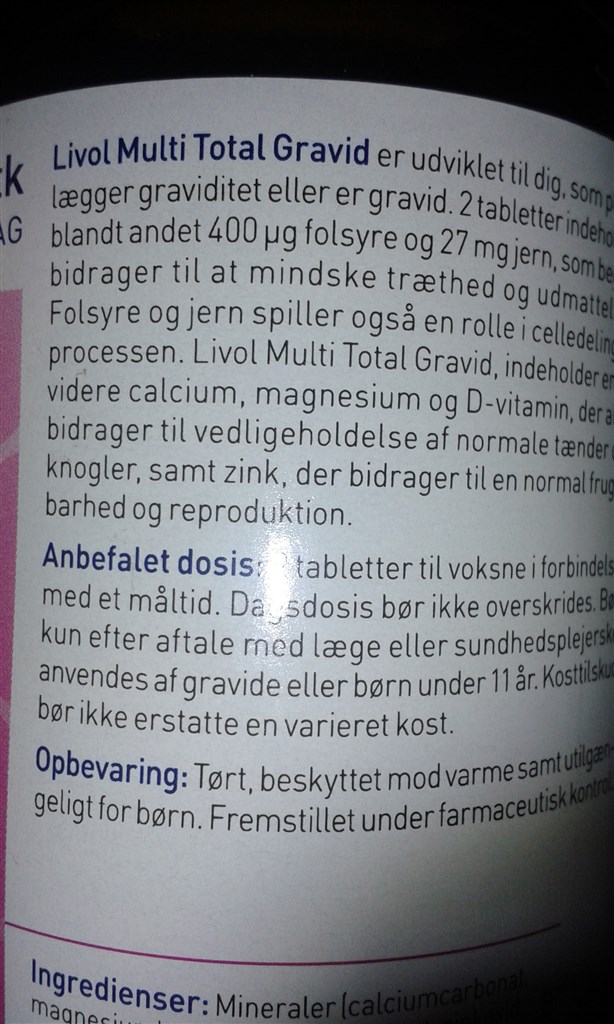 Nå men i dag var jeg inde for at købe gravid vitaminer. Læser selvfølgelig bag på og studser over at gravide kun må tage disse efter aftale med læge.