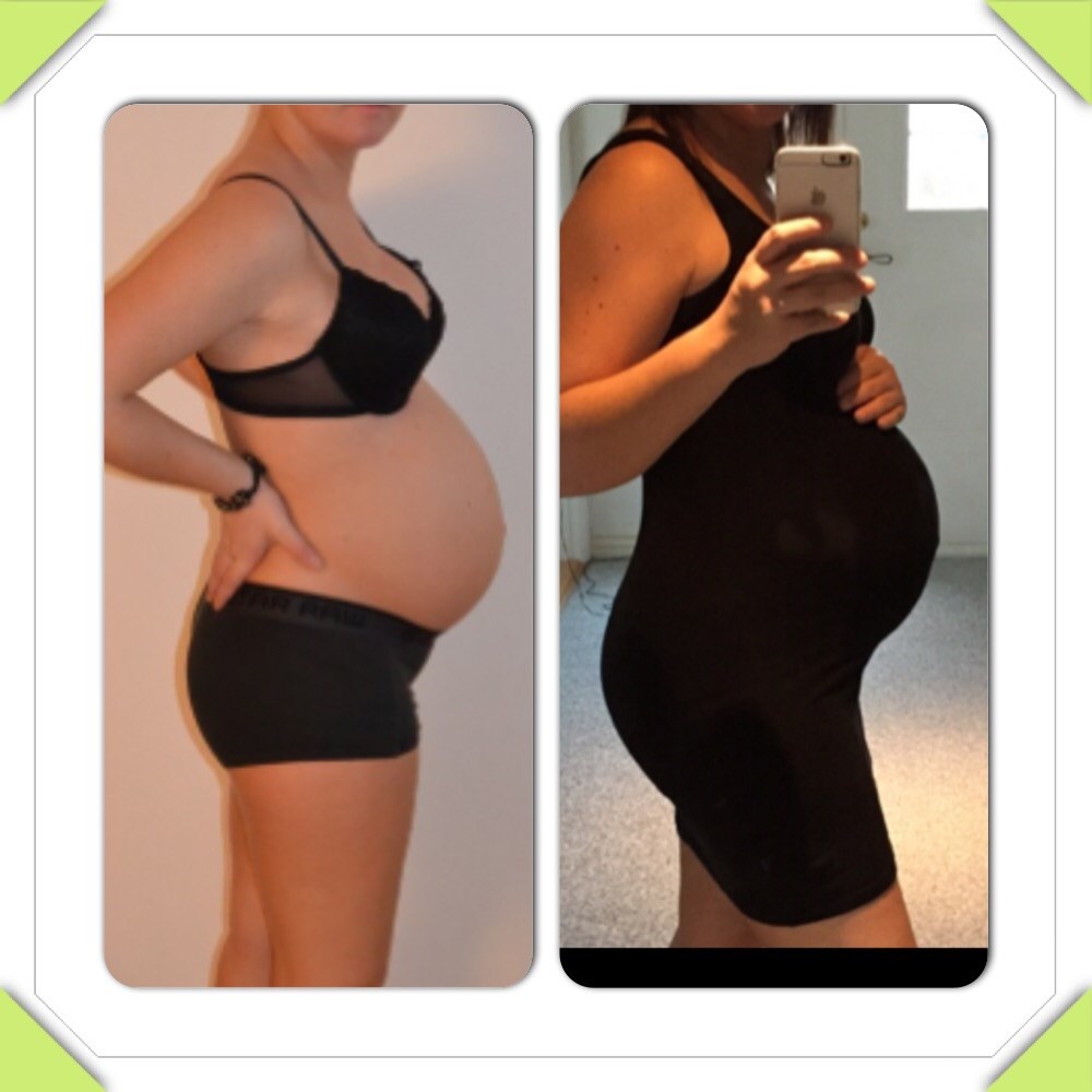 Her er det gået lidt hurtigere i starten med at vokse - men synes egentlig det er gået meget ligeligt indtil nu. Her er jeg i uge 24 på begge billeder i undertøj med min søn i 2012 og som jeg er gravid nu med lillesøster.