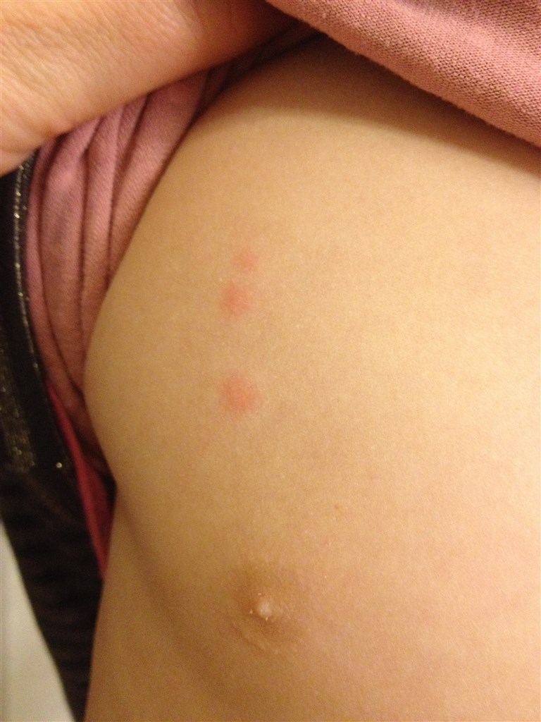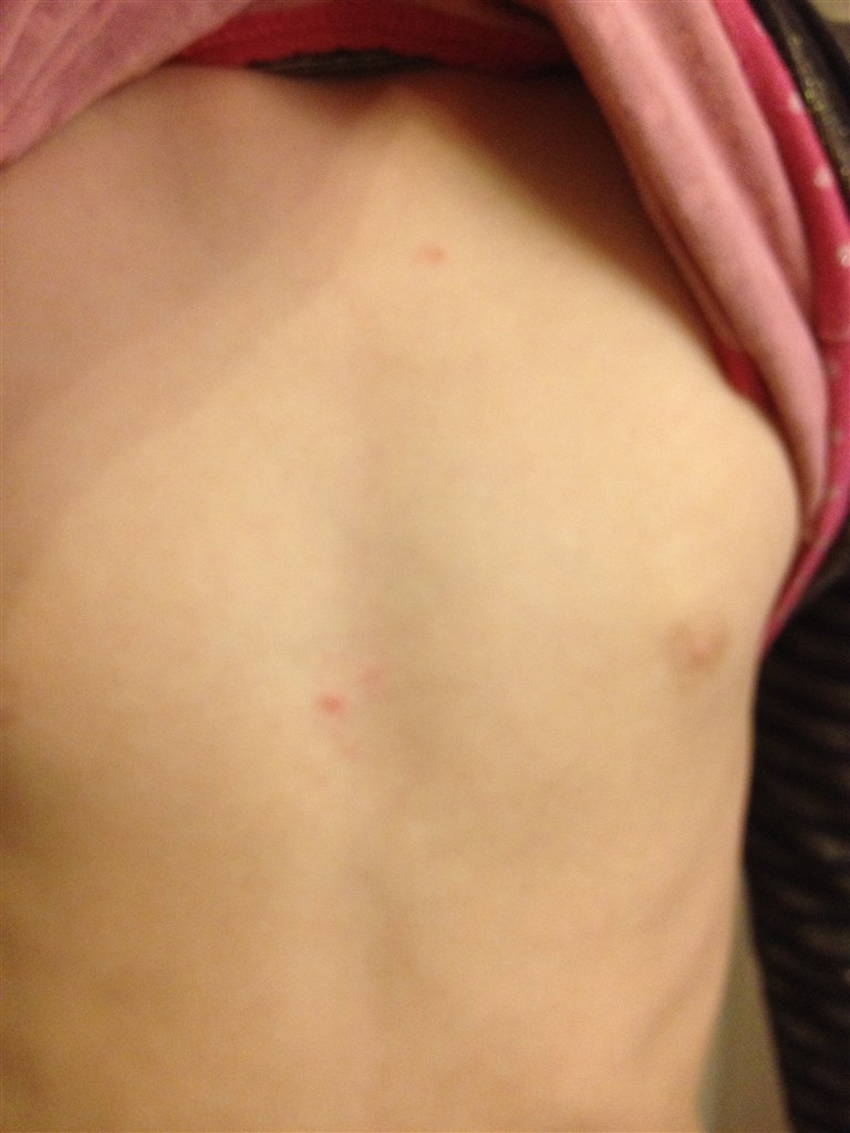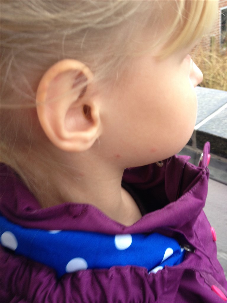 Ja jeg synes det ligner skoldkopper i startfasen. Læg mærke til om der kommer små "blæner"/vabler med væske (så er det skoldkopper). Bare lad dem være og giv din datter et bad i kar, hvor du putter en sok med havregryn i