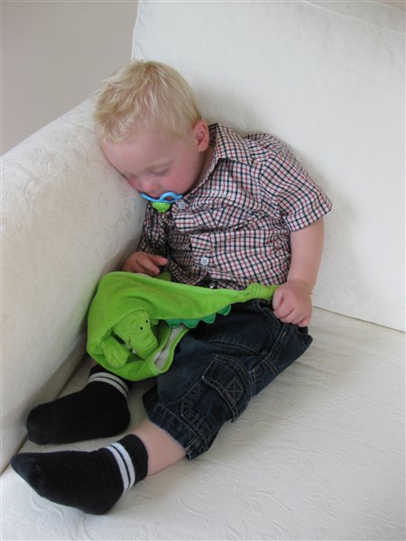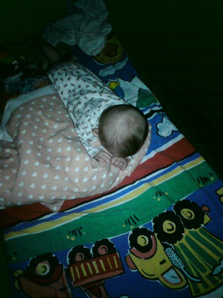 Fandt lige et par andre, for som i kan se falder hun tit i søvn i bilen og den sidste er fra hytten i sommerferien der kunne vi lidt mere naturligt lige fange hende fordi vi alle var/sov i samme rum og der var lys nok til at fotografere, men ikke så sjov en stilling som hun kan herhjemme. Der er der jo lidt afstand fra gulv til seng og nogen gange hænger hun med benene ud over eller så hun nærmest sidder på gulvet og sover. Men generelt ligger hun bare på kryds og tvæs mm. Og hendes helt egen specielle vane dyne er NO NO, selv hvis jeg prøvet at putte den om/over hende når hun er faldet i søvn, reagerer hun i søvne og stønner Nej nej. Jeg kan personligt ikke sove uden den "tryghed" putte følelse