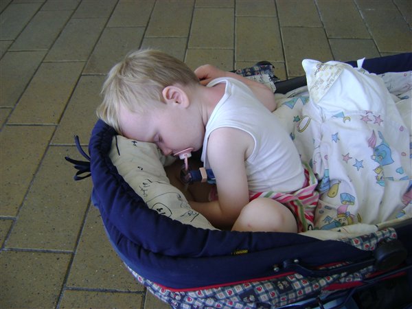 Men har et godt et fra middagssøvnen i ferien. Skal lige siges at vi faktisk havde aftalt at køre hjem fra udflugten, så hun kunne sove i bilen, men Nadia skulle lige køben en souvenier og jeg overlod Danielle til Kenneth han indrømmede godt nok at han godt kunne se hun var ved at falde hen men ikke havde tænkt så langt/nænnet at ligge hende ned. Hun ville måske blive forstyrret af det og vågne helt op igen og så ved vi, vi har balladen, har hun først "sovet" bare 5 minutter er der ikke mere middagssøvn den dag. Jeg havde nok lagt hende ned, men ok hun led ikke overlast. Øh det er så den miderste.