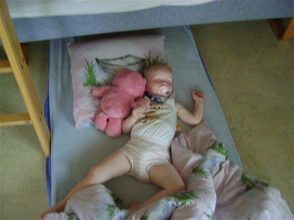 Ja det gør Danielle døren står altid på klem og vi kigger som minimum ind inden vi selv ligger os så vi ser meget sjovt, men generelt "forstyrrer" vi hende ikke om natten og slet ikke med lys/blitz så har ikke noget sengebilleder.