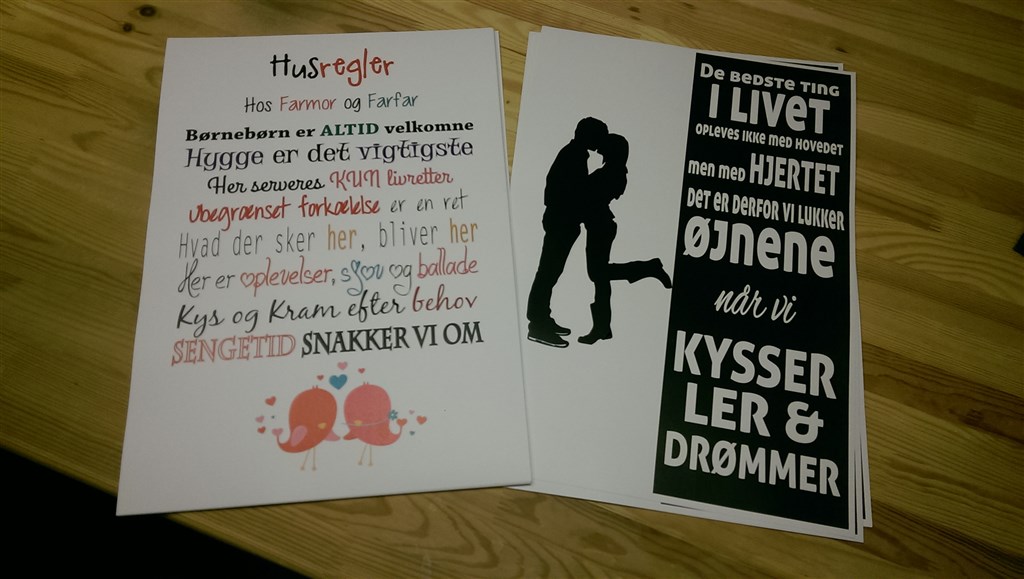 Alle plakater er printet på kraftigt papir i høj kvalitet (250g/m2) beregnet til farveprint.
