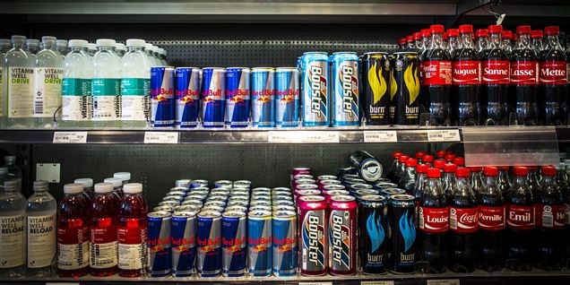 De har navne som Red Bull, Cult, Monster og Burn. Dåserne står på sodavandshylderne i supermarkeder og kiosker og lokker med deres stærke farver.
