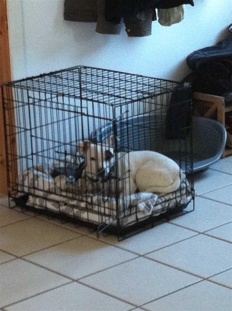 Vores første hund Jack i vores første hus. Han havde kun oplevet lejligheder før. Han blev desværre kørt ned for 2 år siden
