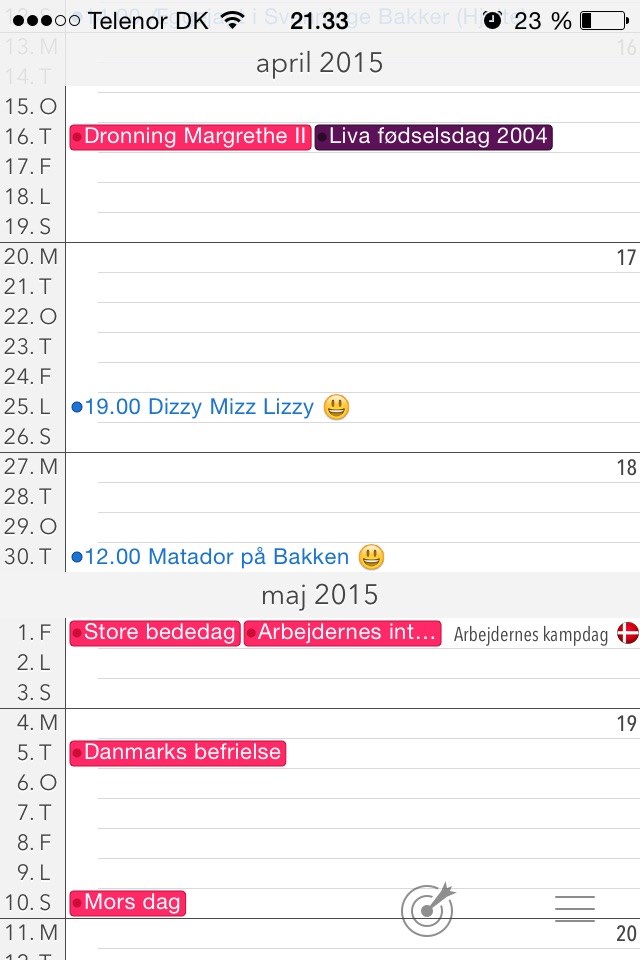 Men altså med google kalender kan man have mange forskellige "kalendre" med hver sin farve - min mand er gymnasielærer og har også sine timer (med lokaleoversigt mm) i en kalender, og der vælger jeg så bare at fjerne et flueben, så behøver jeg ikke at have den stående i min kalender.