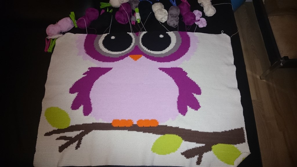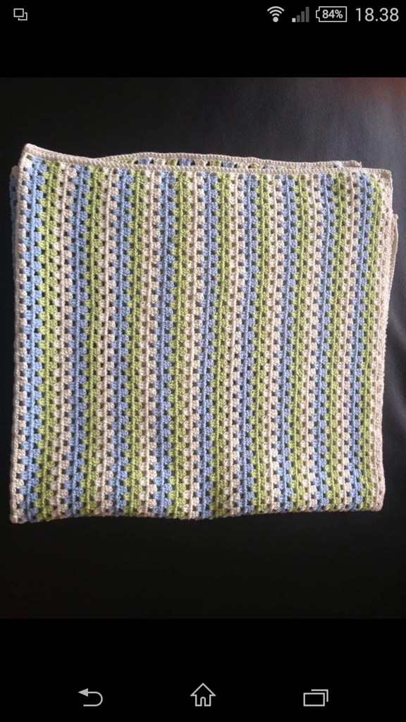 Jeg er lidt i tvivl, om du har garn nok..? Det kommer selvfølgelig meget an på løbelængden i dine garnnøgler, og hvilken slags tæppe, du ender med at lave, men hækling kræver generelt mere garn end strik. Og da jeg strikkede Mary-svøbet, kostede det alligevel 6 nøgler, selvom det er et meget luftigt tæppe, med mange huller.