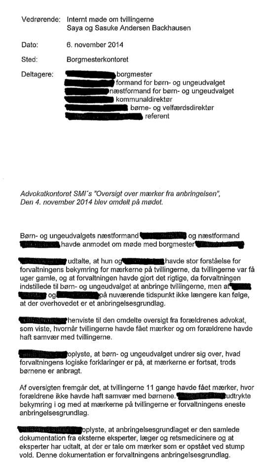 Det dokument som bliver lagt op her på side 7 - jeg ved ikke om det er offentligt tilgængeligt (som i meget offentligt tilgængeligt), eller hvordan. Fordi igennem HELE dokumentaren er tvillingerne udtalt som "børnene", så jeg synes faktisk det er ret ærgerligt at dette dokument afslører børnenes navne! Der har været anonymitet omkring navnene i dokumentaren.. (Jeg har dog heller ikke læst den artikel folk også snakker om - med de 11 mærker... Måske børnenes navne også står dér?) Hvis den anonymitet er berettiget bør "dokumentet" slettes..