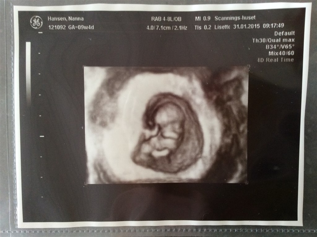 Så var til ts i dag hvor vi så at den lille havde vokset som den skulle, den var fin, havde arme og ben også var den lille hjerte jo på arbejde også så vi at den lille "hoppede" og "vinkede" til os