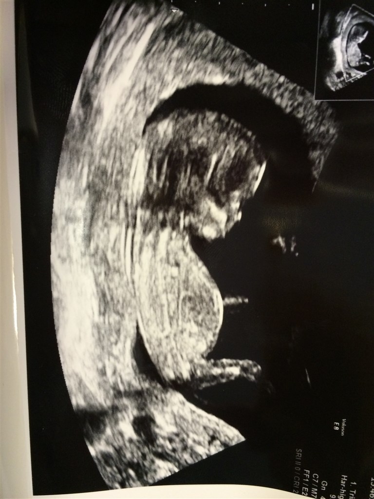 Har idag været til Nakkefoldscanning! Der lå den fineste lille bebs og var noget så livlig!