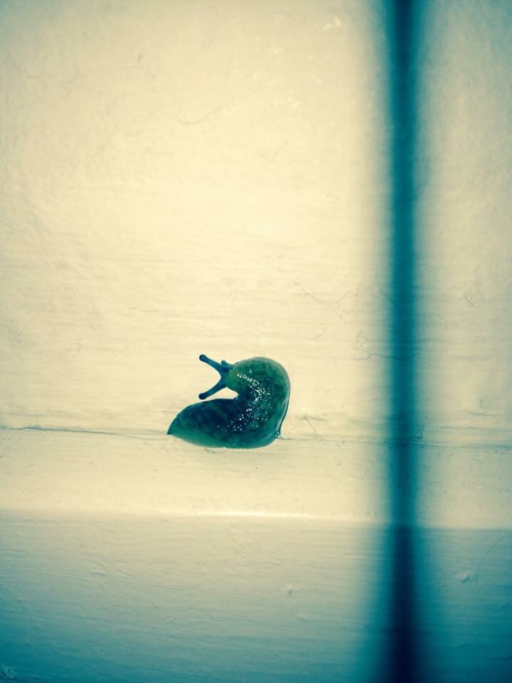 Allerede efter 3 dage i huset, havde vi vores første besøg af en klam klam snegl. (Senere identificeret som en land-lungesnegl).