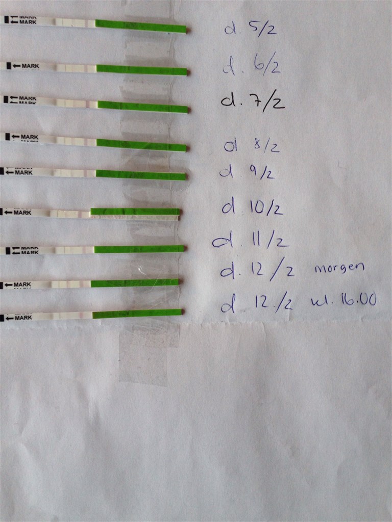 Vedhæftede er mine. Den øverste var positiv igår morges og den nedenunder er fra onsdag eftermiddag kl 17