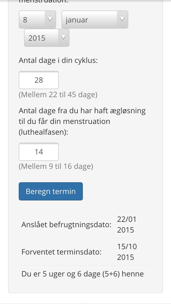 latifadjekic skriver: for 2 dage siden da jeg regnede min termin ud var jeg 5+4 . Og fik de oplysninger har ikk været ved lægen inddnu så der kommer nok en hel anden dato